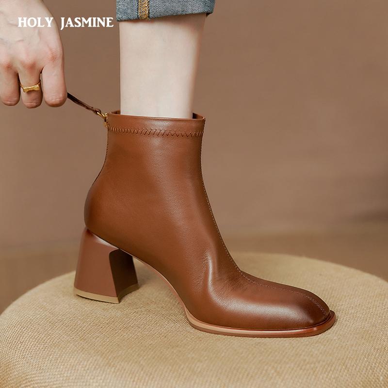 Осенние сапоги женские с круглым носком и толстым каблуком женские сапоги из натуральной кожи женские лаконичные короткие сапоги сапоги на высоком каблуке с застежкой-молнией — купить товар онлайн с бесплатной доставкой по всему миру!