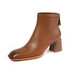 Осенние сапоги женские с круглым носком и толстым каблуком женские сапоги из натуральной кожи женские лаконичные короткие сапоги сапоги на высоком каблуке с застежкой-молнией