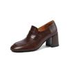 Базовые туфли-лодочки в стиле ретро для женщин, весна-лето, круглый носок, толстый каблук, женские туфли-лодочки из натуральной кожи для работы, для зрелых офисных леди 2024