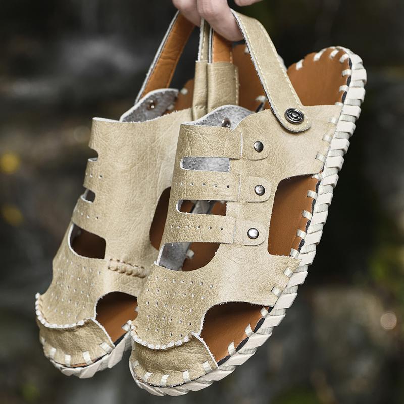 Новые летние мужские туфли для вождения, сандалии, домашние тапочки, пляжная обувь, повседневные, легкие, универсальные, кожаные, водонепроницаемые тапочки, двойного назначения