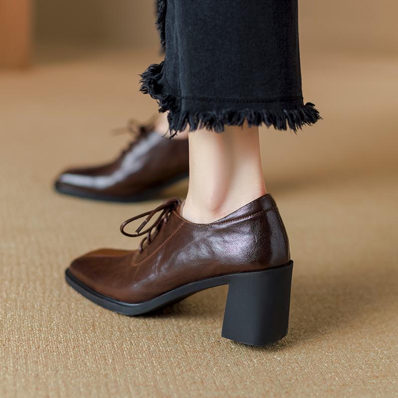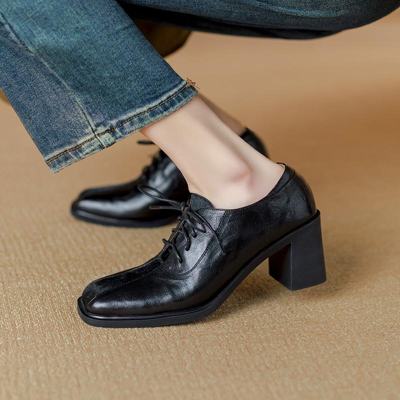 Женские туфли-оксфорды из натуральной кожи с круглым носком, черные, коричневые, женские броги на шнуровке, повседневные туфли для женщин, кожаные туфли 2024
