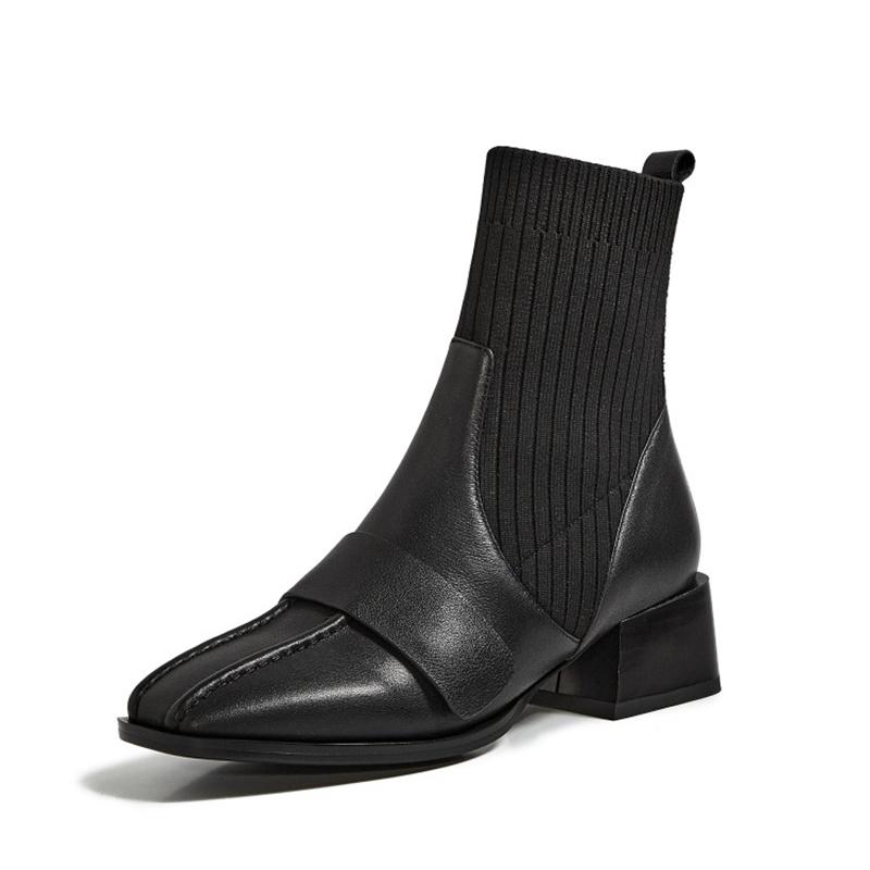 2024 Новые женские ботинки в стиле ретро с квадратным носком, осенние ботильоны на квадратном каблуке из коровьей кожи с эластичной резинкой, короткие женские ботинки, размер 34-40