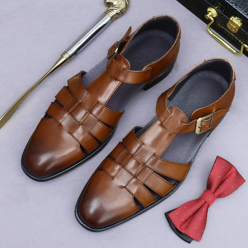 Роскошные летние мужские сандалии из натуральной кожи 2024 года, дышащий дизайн, повседневная пляжная обувь для отдыха на природе, большие размеры 38-46 — купить товар онлайн с бесплатной доставкой по всему миру!