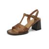 2024 Новые летние женские сандалии из натуральной кожи для женщин Туфли с открытым носком и открытой пяткой на толстом каблуке Бежевые гладиаторские туфли