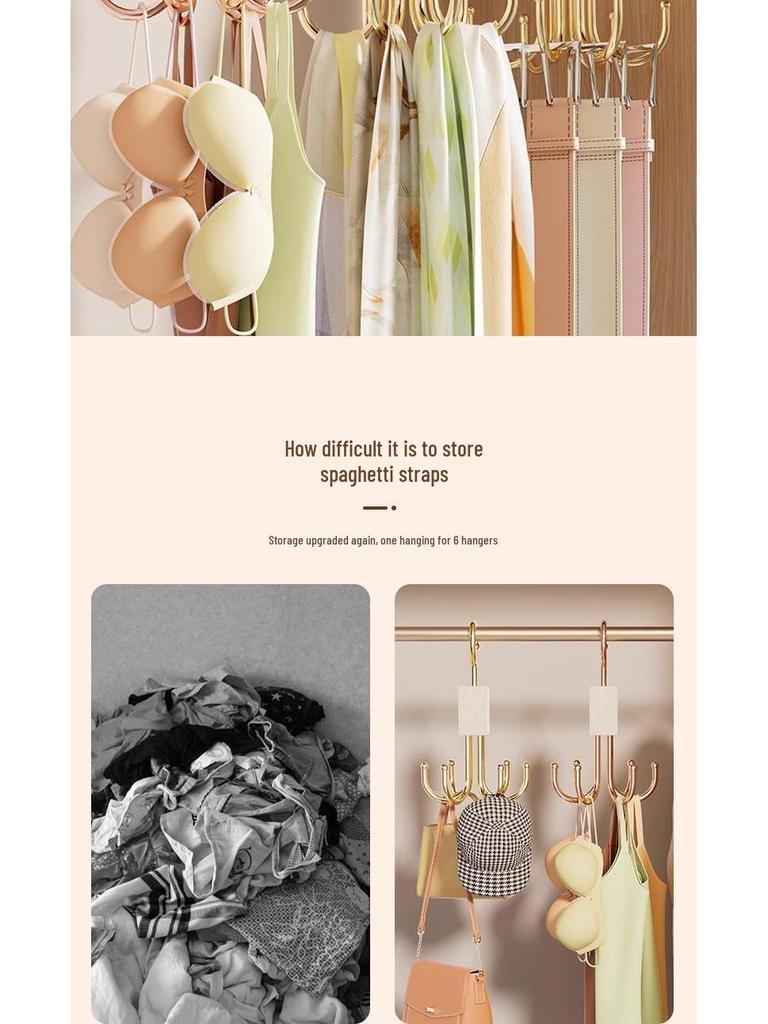 Вращающаяся многофункциональная вешалка с шестью крючками для сумок, нижнего белья и одежды