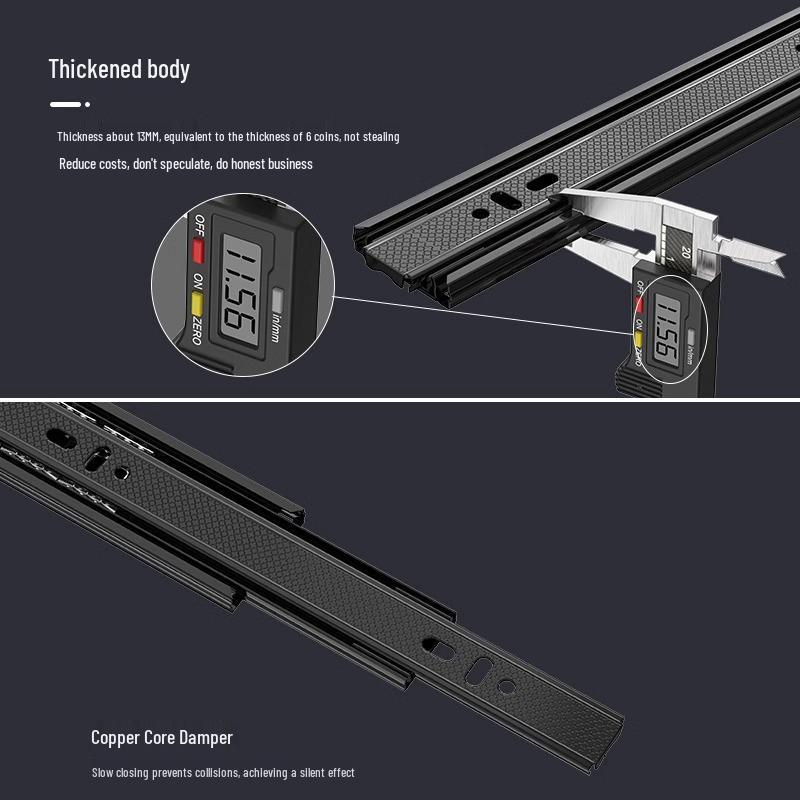 Утолщенная нержавеющая сталь, бесшумный шариковый подшипник, направляющая для ящика шкафа - трехсекционная направляющая с буфером
