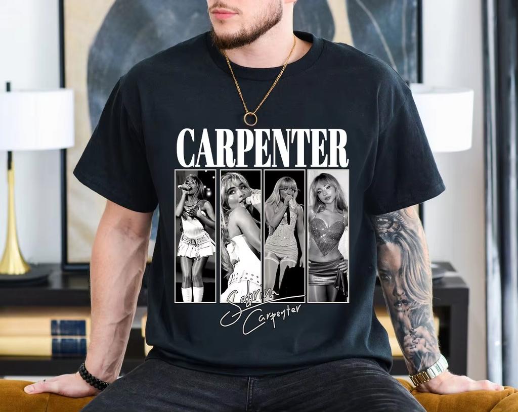 Сабрина Карпентер Эспрессо Хлопковая футболка Унисекс Женская Мужская С коротким рукавом Повседневная Ежедневная Фан-атрибутика Топы Альбом Новое поступление Футболка
