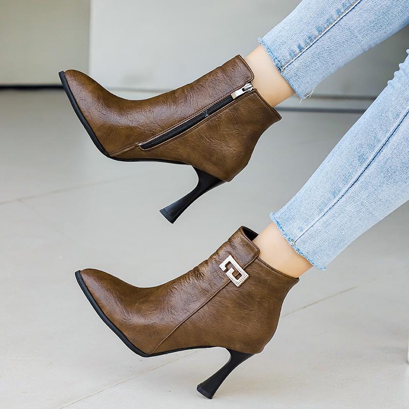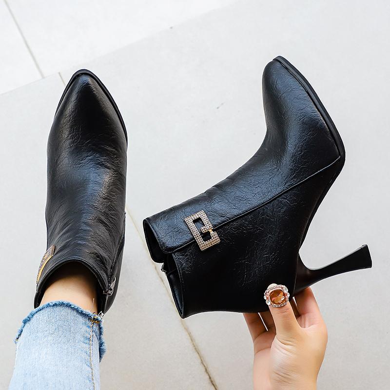 Женские ботильоны на высоком каблуке, модные кожаные туфли с острым носком, зима 2025 года, новые готические туфли-челси больших размеров Botas Mujer