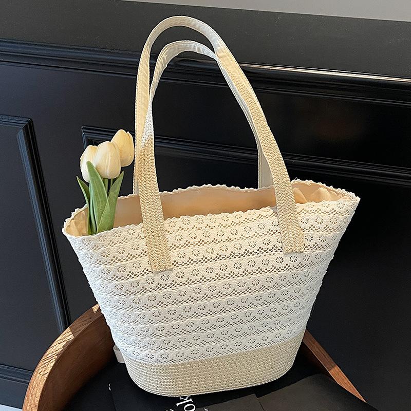 2025 woven straw bag summer new commuter large capacity striped shoulder fashion beach bag women