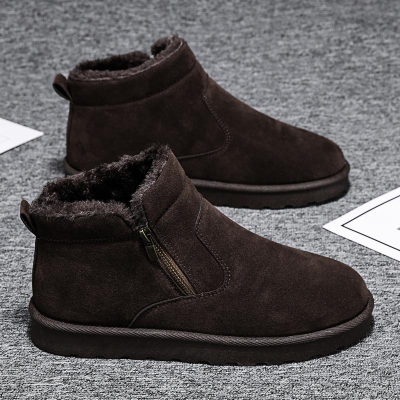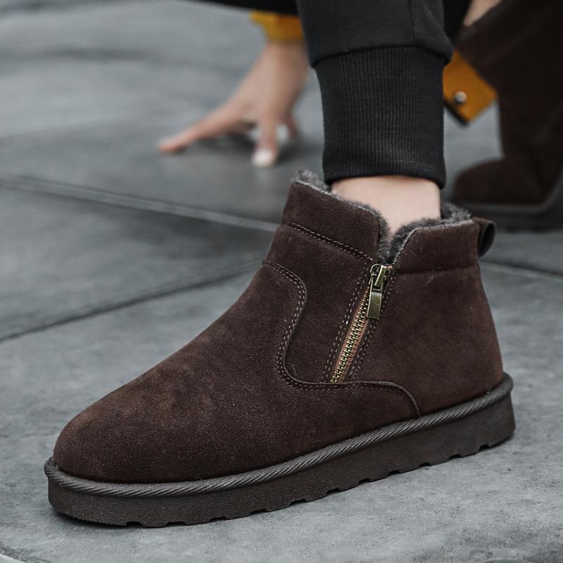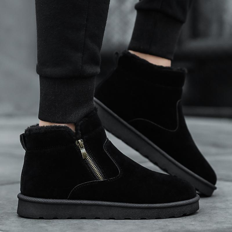 Зимние сапоги для снега, мужские теплые плюшевые ботинки на платформе, мягкие нескользящие мужские хлопковые ботинки для отдыха на открытом воздухе, короткие сапоги с пушистым мехом