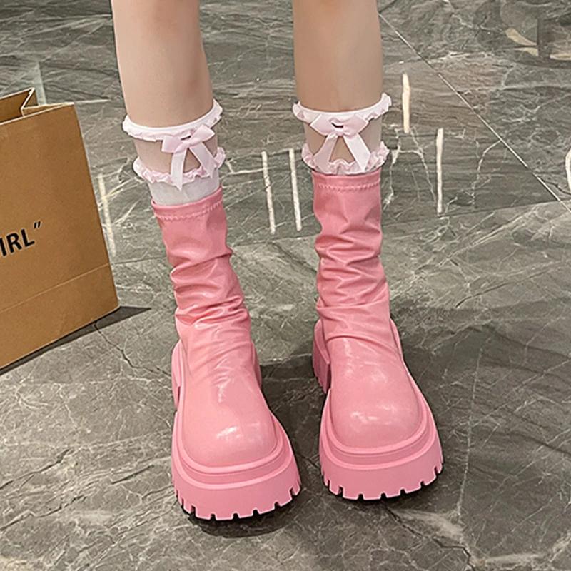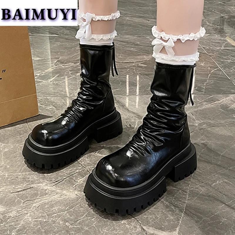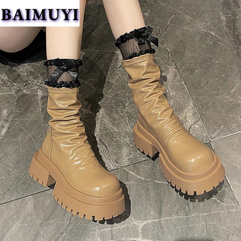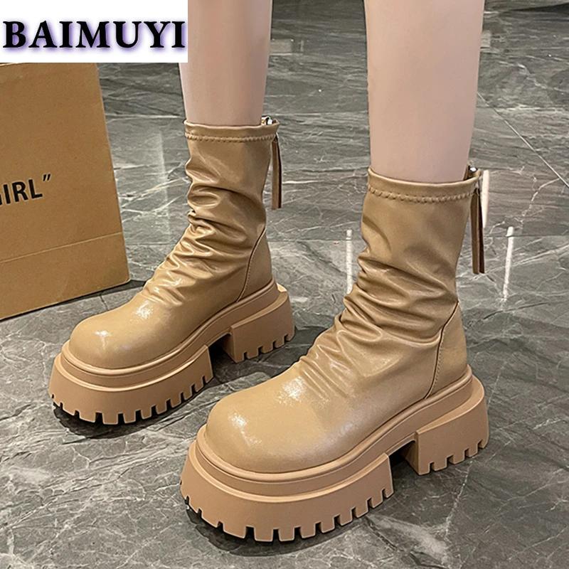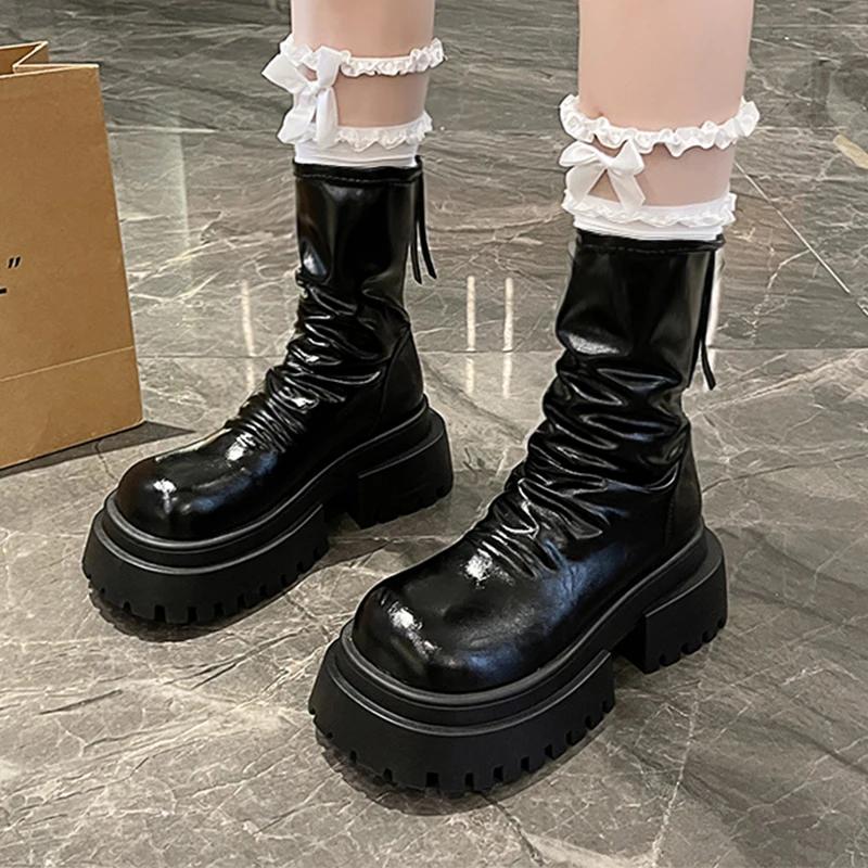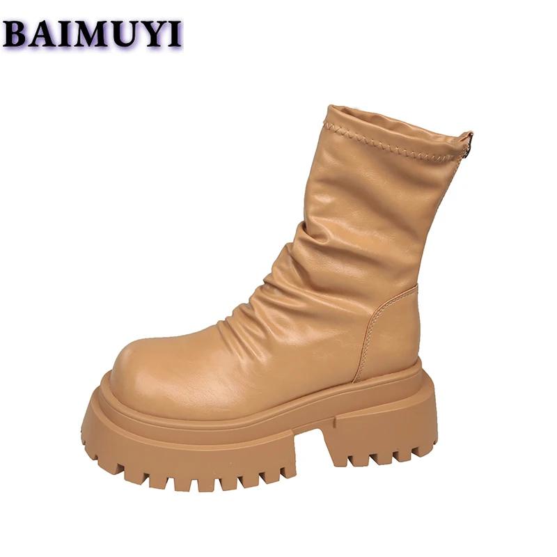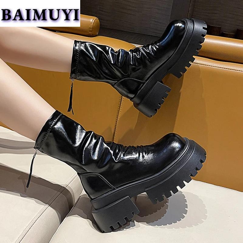 Женские ботильоны на платформе и высоком каблуке, модная обувь 2025 года, тренд зимы, новые плиссированные панк-ботинки «челси», туфли-лодочки на молнии, женские ботинки