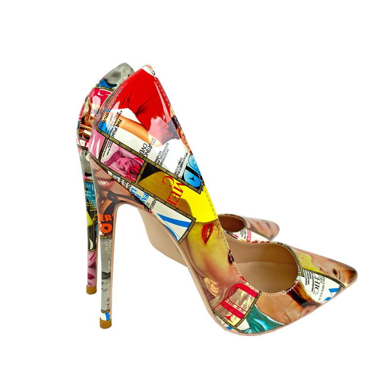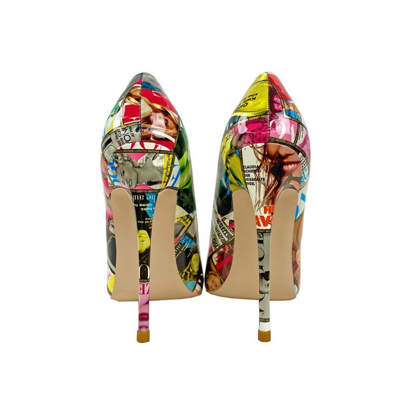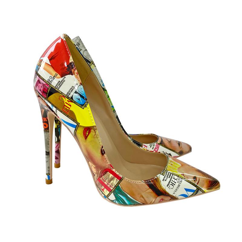 Новые модные туфли на высоком каблуке с граффити, туфли с неглубоким вырезом, туфли на тонком каблуке высотой 12 см, 10 см, 8 см, новые женские туфли
