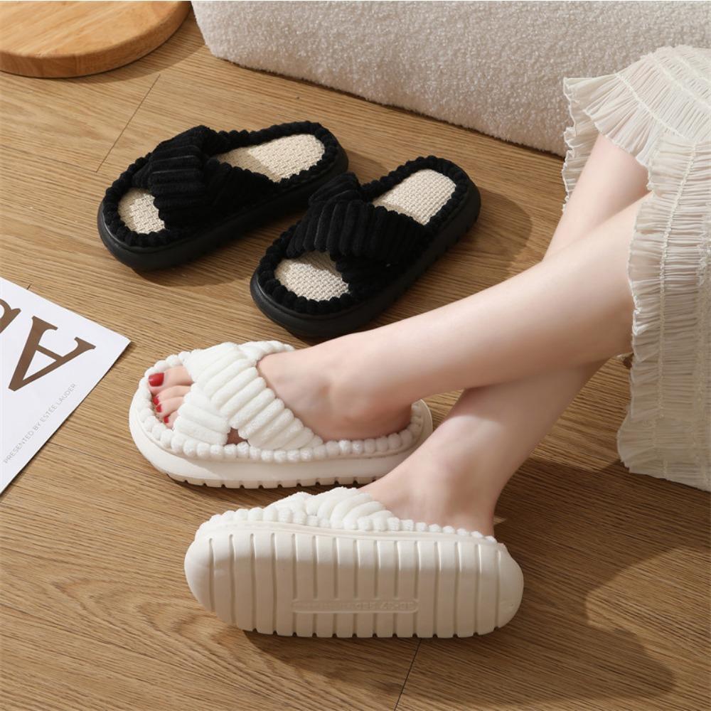 Вельветовые хлопковые тапочки женские домашние тапочки мужские и женские нескользящие домашние теплые тапочки из ЭВА с толстой подошвой женская обувь