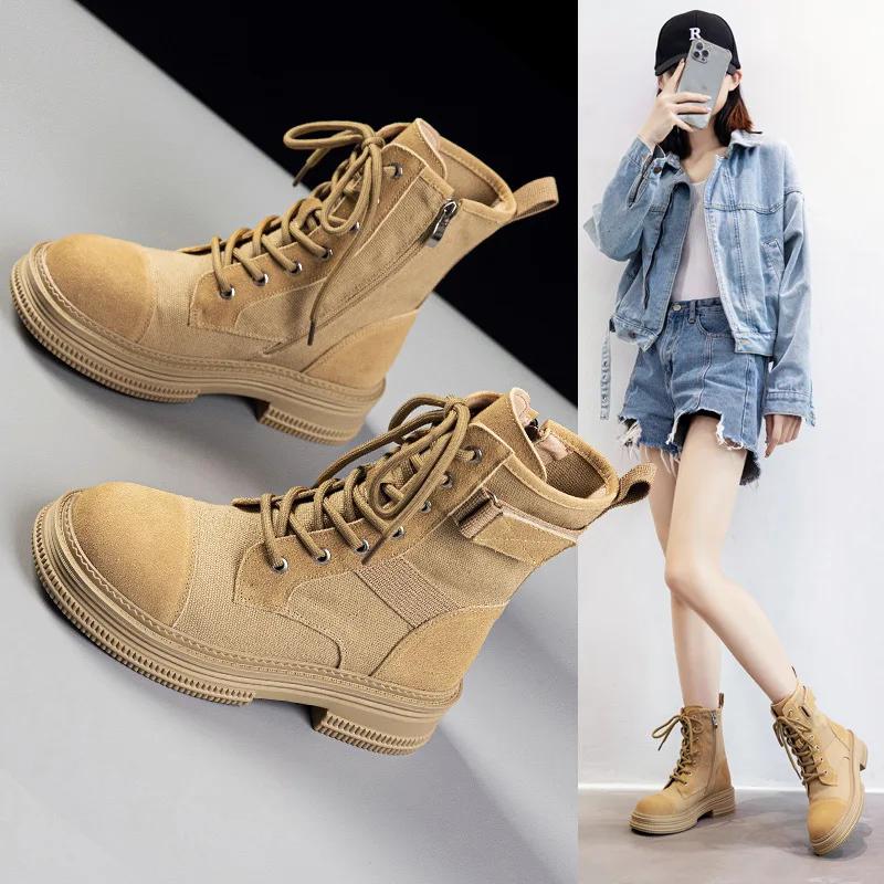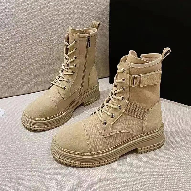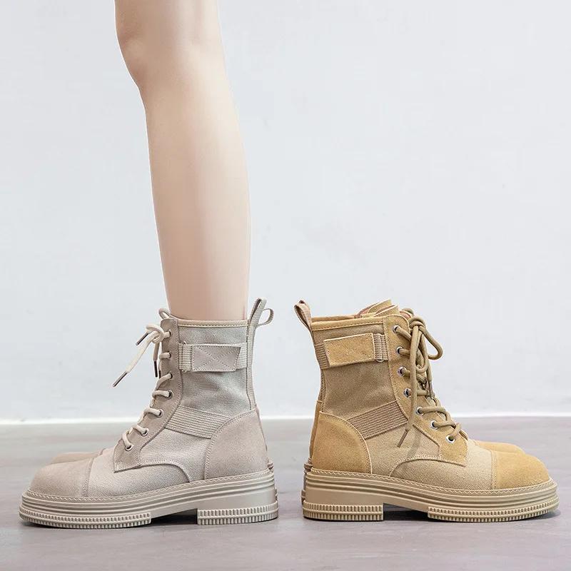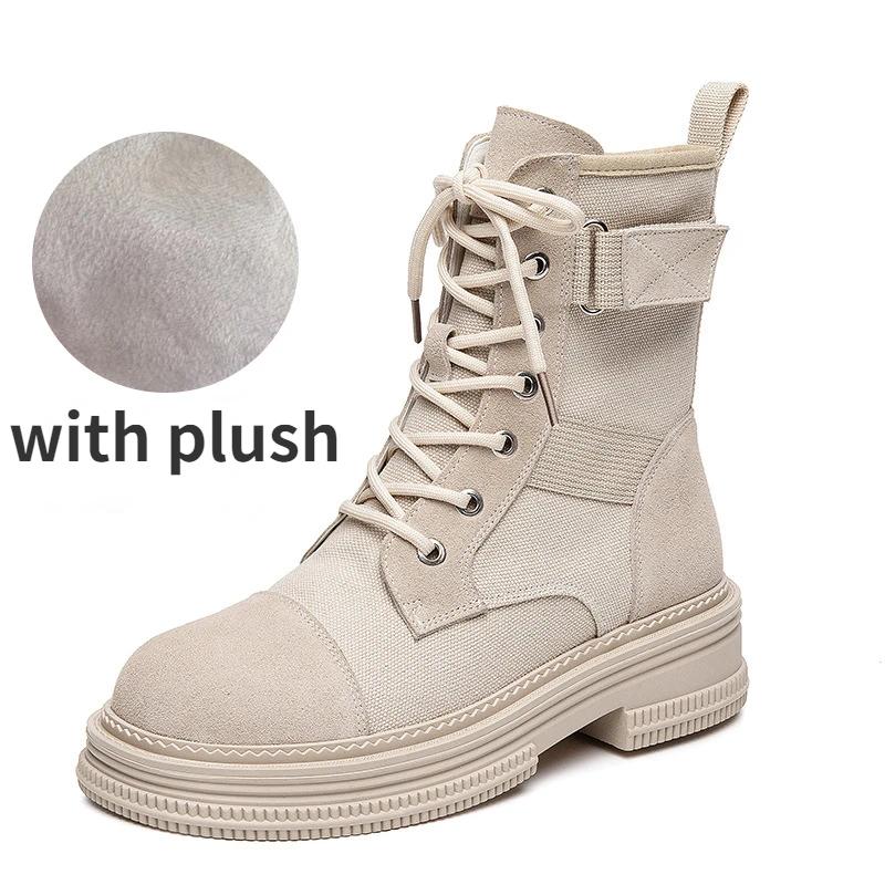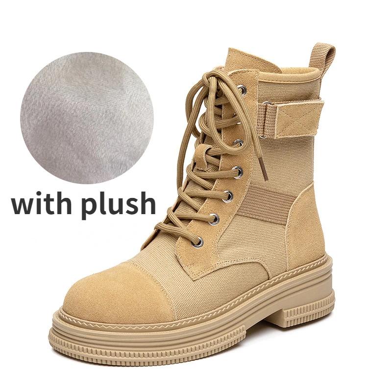 Женские сапоги из натуральной кожи, весна 2024, новые парусиновые сапоги с толстой подошвой и боковой молнией, плюшевые короткие сапоги для пустыни, женские сапоги