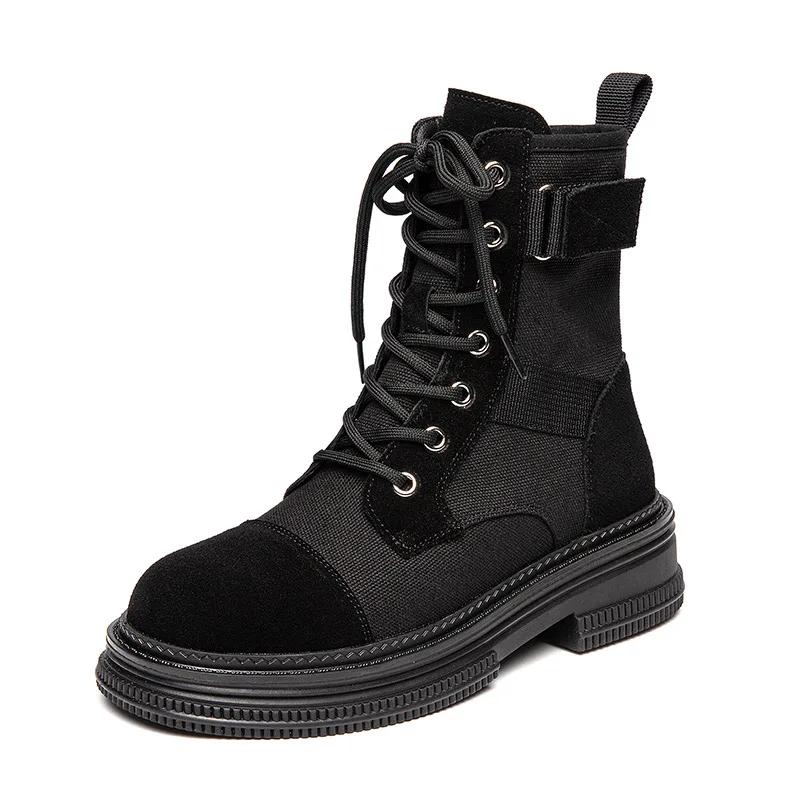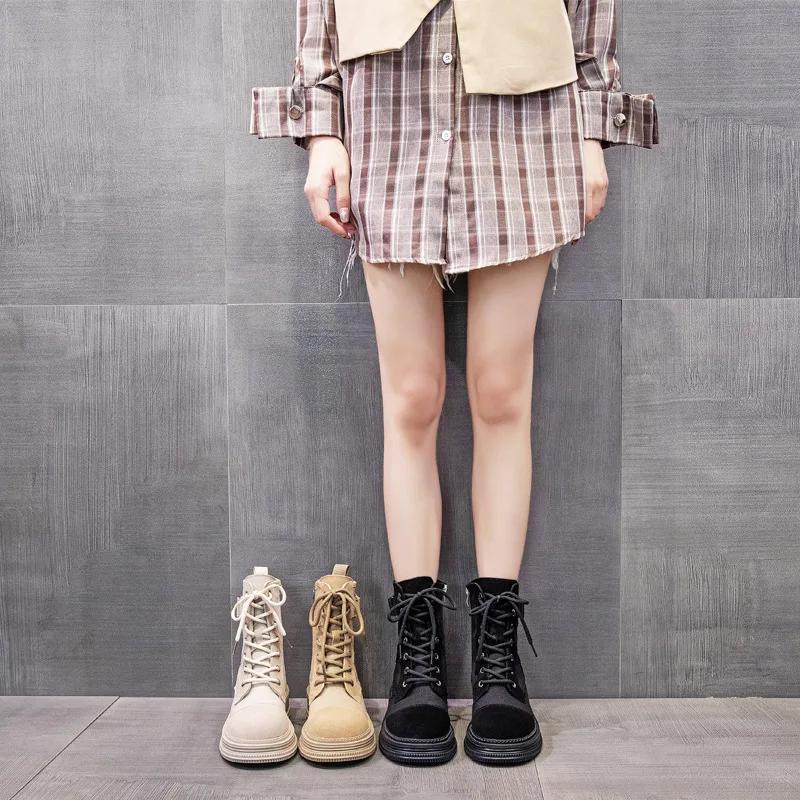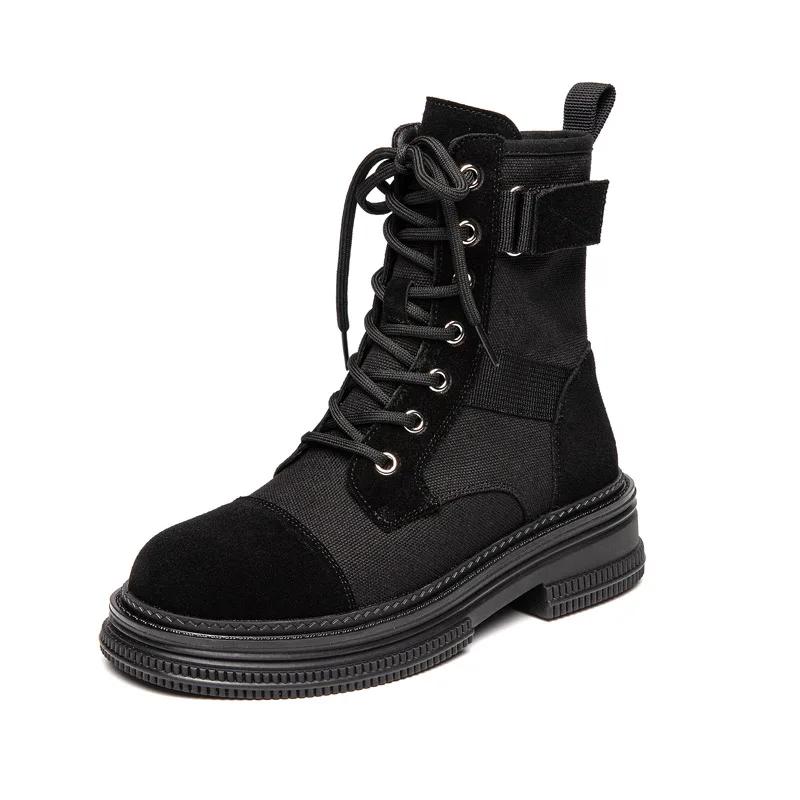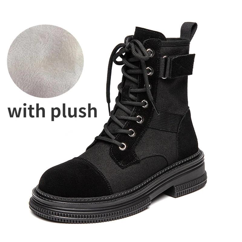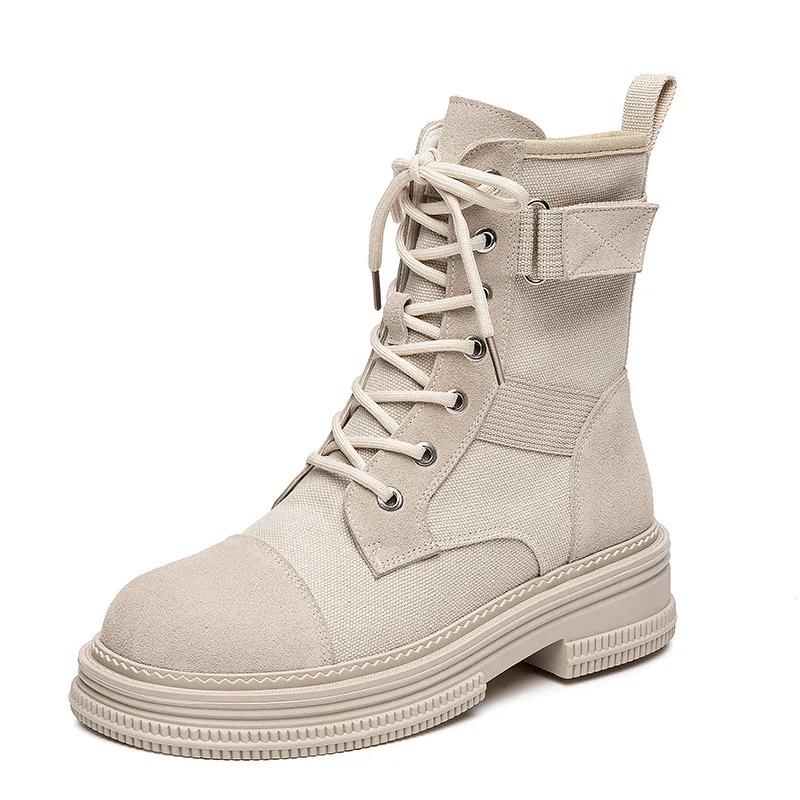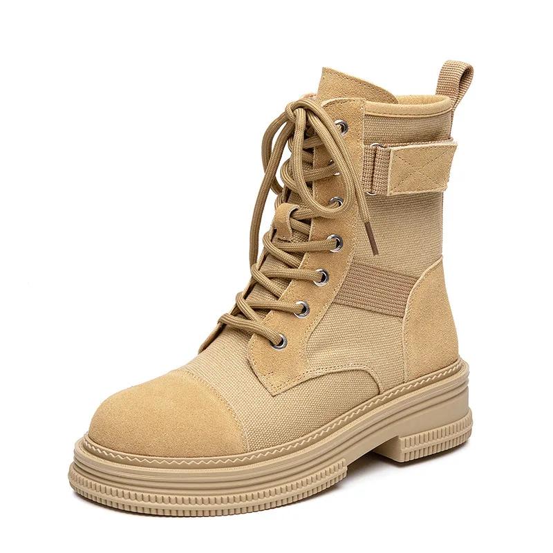 Женские сапоги из натуральной кожи, весна 2024, новые парусиновые сапоги с толстой подошвой и боковой молнией, плюшевые короткие сапоги для пустыни, женские сапоги
