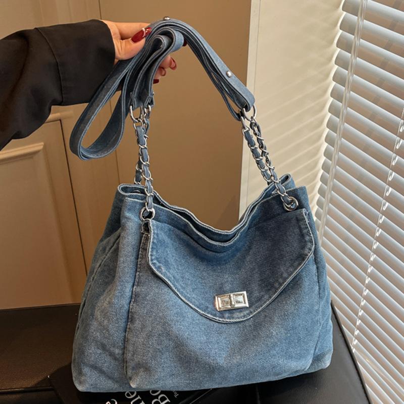 Trendy new 2025 Korean version single shoulder oblique span bag chain commuting large capacity stray bag women's bag denim underarm bag — купить товар онлайн с бесплатной доставкой по всему миру!