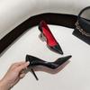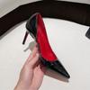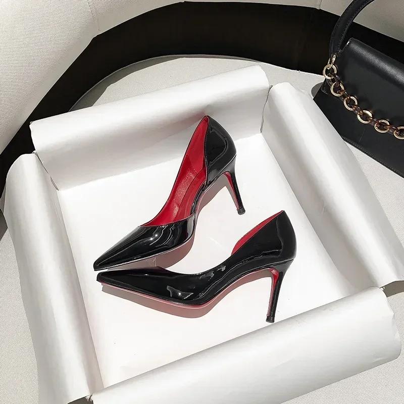 Красная подошва лодочки женские туфли черные остроконечные лакированные кожаные туфли с боковыми вставками на высоком каблуке женские тонкие каблуки элегантные и сексуальные одинарные туфли