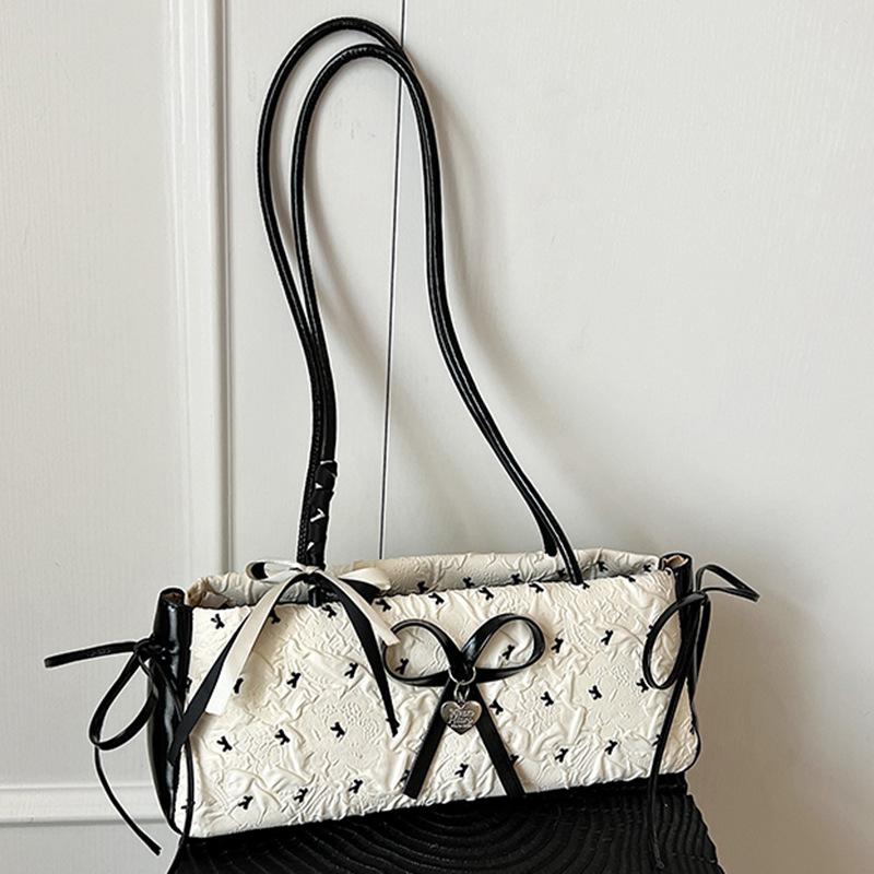 Маленькая женская сумка 2025 года, летняя модель, черная с розовым контрастным бантом, модная и милая сумочка через плечо или под мышкой. — купить товар онлайн с бесплатной доставкой по всему миру!
