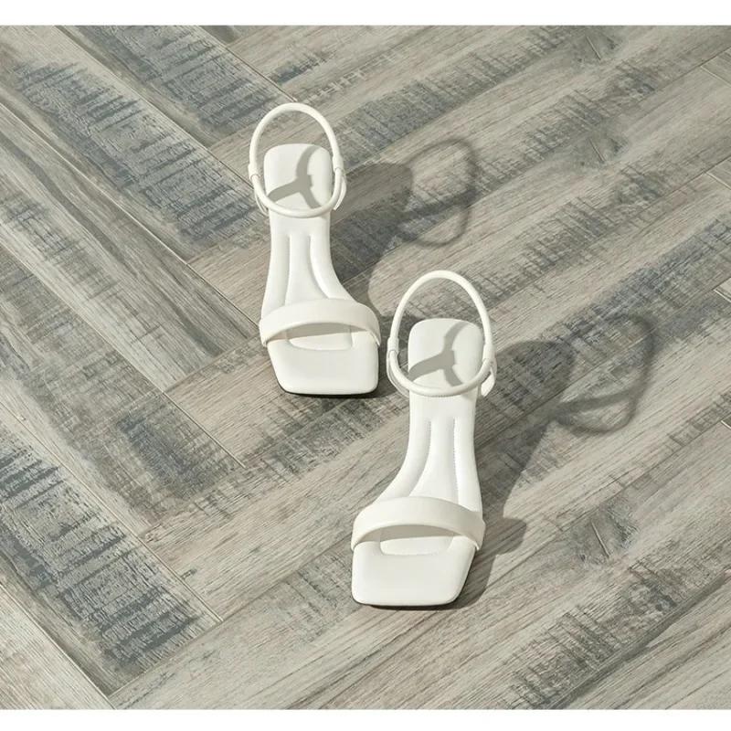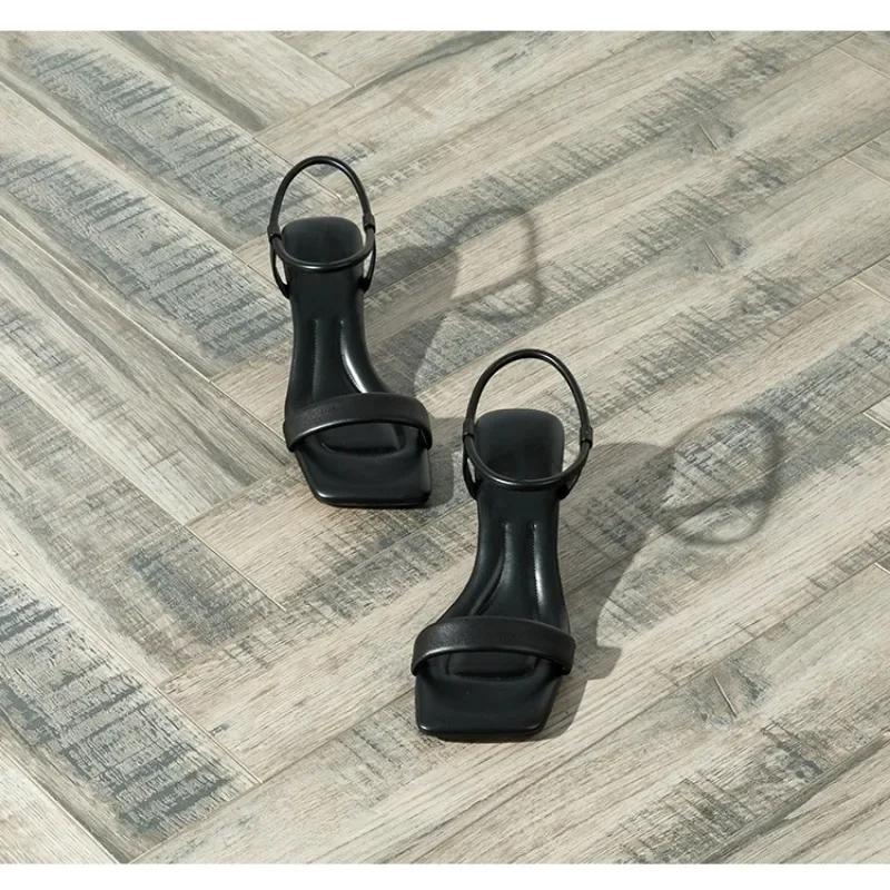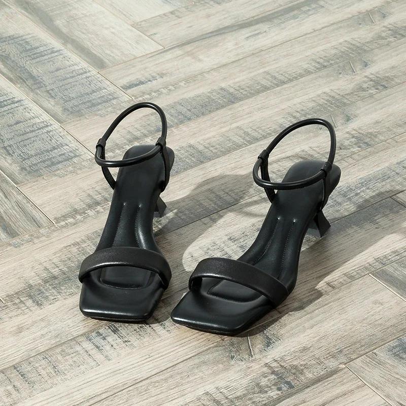 2024 Новые черные босоножки с пряжкой на щиколотке, летние женские туфли со стразами и квадратным носком на высоком каблуке-шпильке