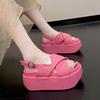 Женские босоножки на платформе 8 см с открытым носком, повседневные кроссовки на толстой подошве, женские летние кожаные пляжные тапочки на розовом каблуке