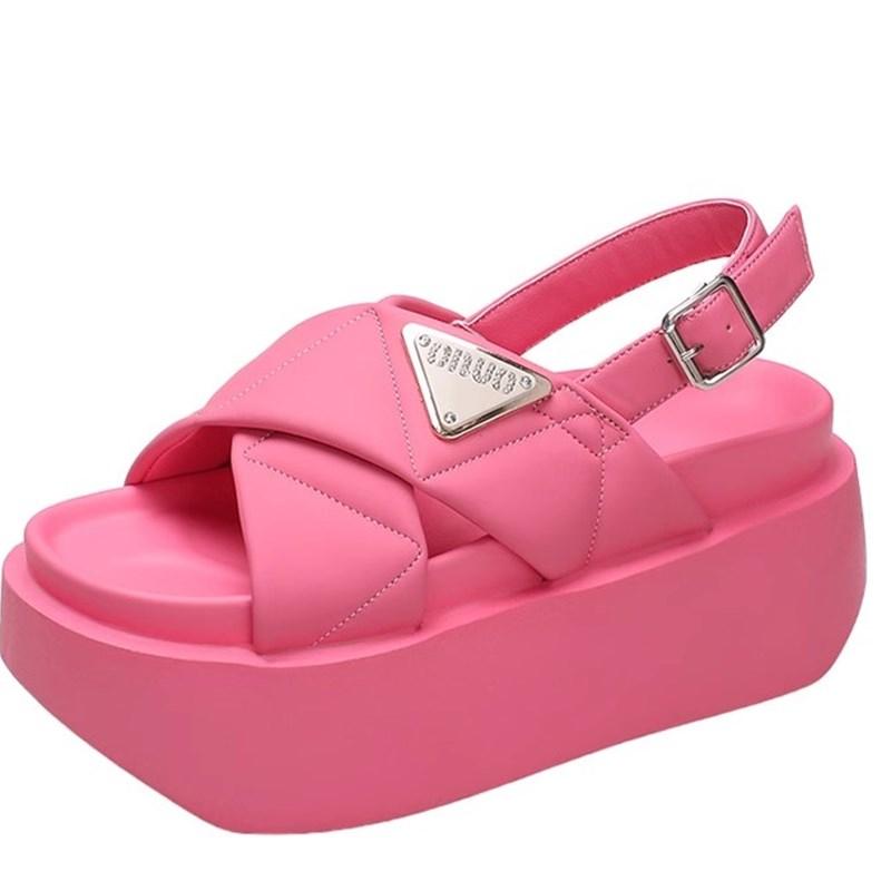 Женские босоножки на платформе 8 см с открытым носком, повседневные кроссовки на толстой подошве, женские летние кожаные пляжные тапочки на розовом каблуке — купить товар онлайн с бесплатной доставкой по всему миру!