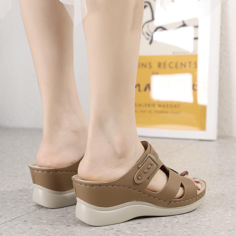 Летние новые удобные тапочки женские повседневные пляжные туфли на покатом каблуке однотонные легкие сандалии Sandalias Femininas