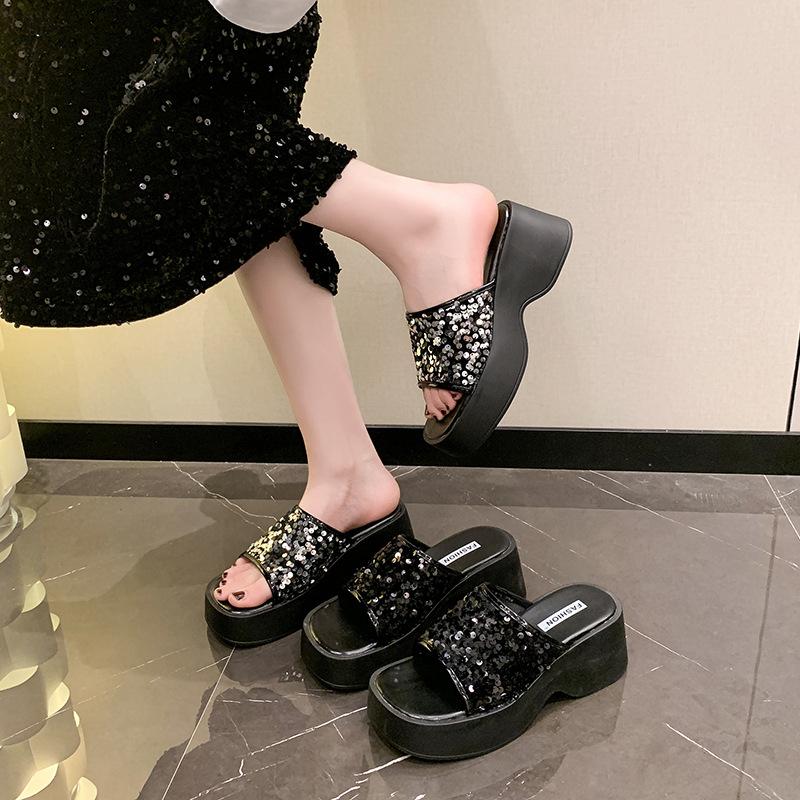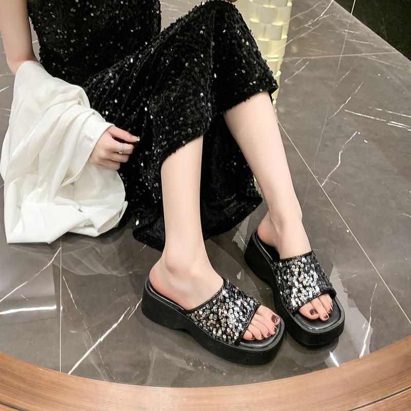 Женские шлепанцы High Sense с толстой подошвой и пайетками, летняя новинка 2024 года, модная пляжная обувь Fairy Wind, повседневные тапочки