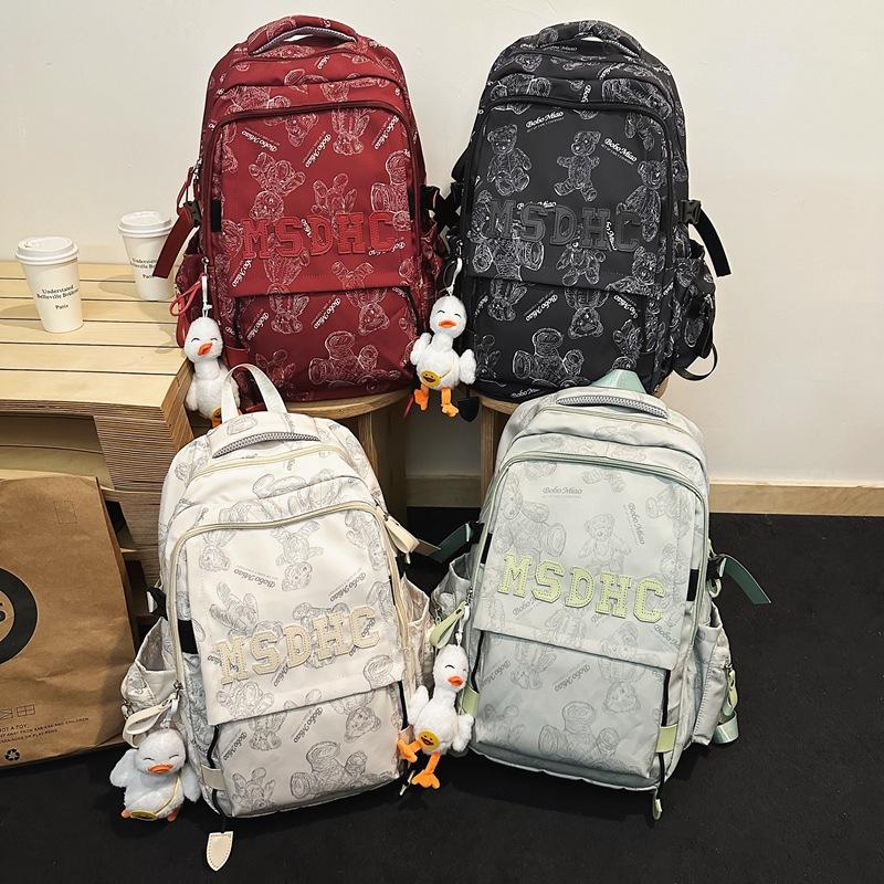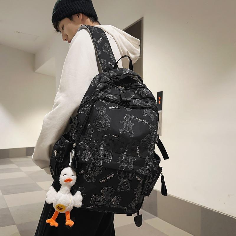 School bag for female junior high school students, simple and versatile printed bear niche design 2025 new college student computer backpack for men