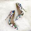 Модные новые туфли для вечеринок с вышивкой в стиле граффити, туфли для банкета 12 см 10 см 8 см, заостренные тонкие каблуки