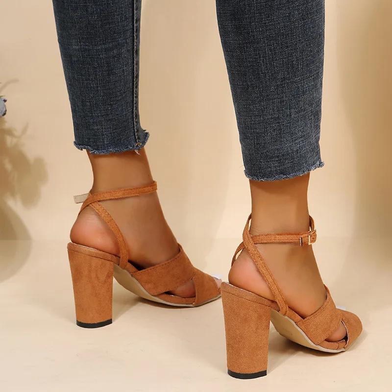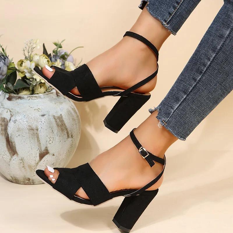 Модные сандалии на блочном каблуке, женская обувь, классические черные, бежевые женские сандалии, летняя обувь, элегантные брендовые сандалии с открытым носком
