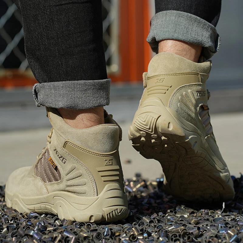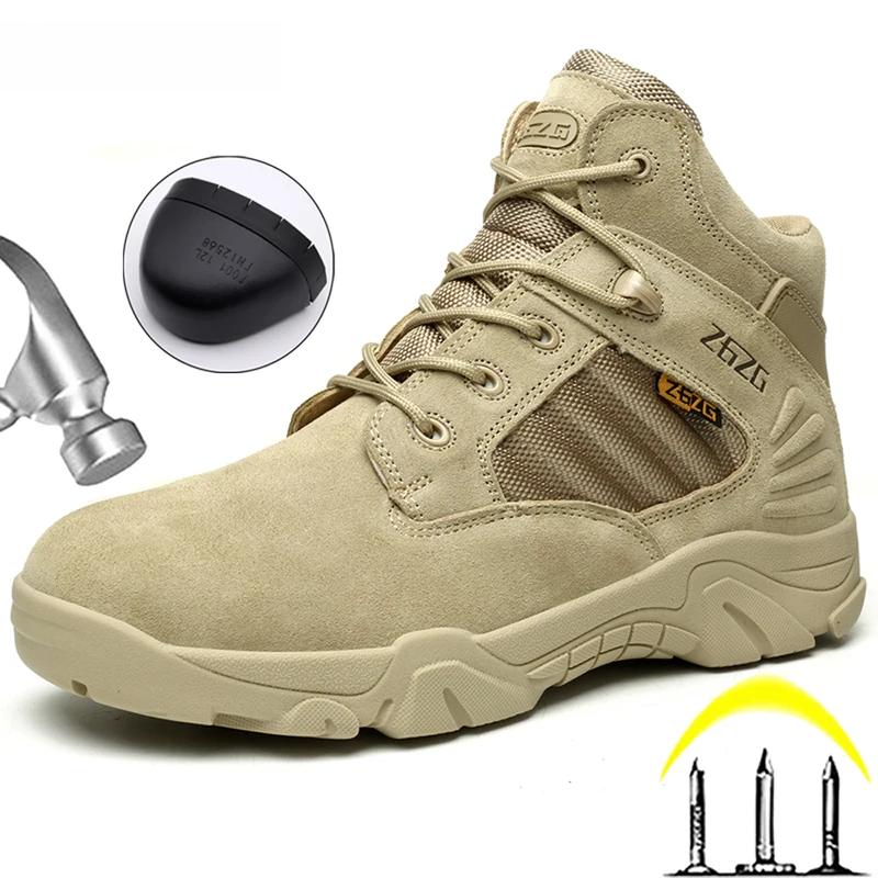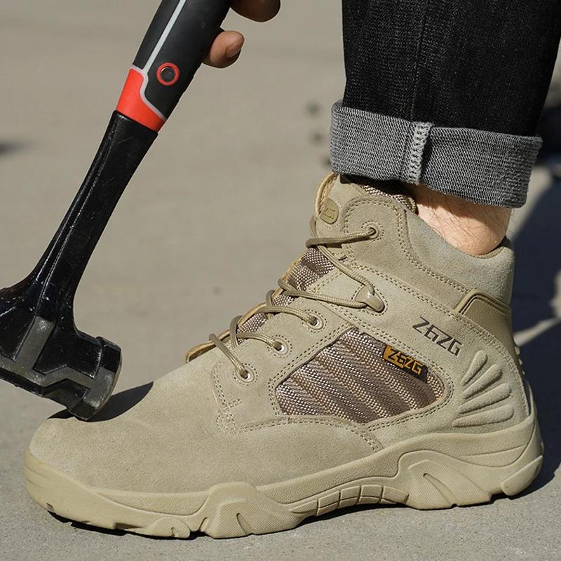 Мужские ботинки для пустыни на открытом воздухе со стальным носком, рабочие ботинки, неразрушимые, боевые, устойчивые к проколам, противоударные, защитные ботинки