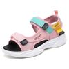 Сандалии на платформе женские летние женские туфли на толстой подошве радужного цвета с застежкой-липучкой на танкетке с открытым носком на платформе