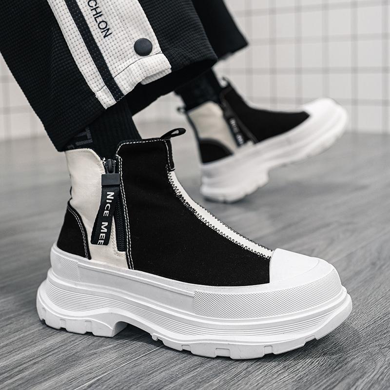 Осенние мужские повседневные кроссовки из парусины на толстой платформе, высокие кроссовки с застежкой-молнией в стиле пэчворк, мужская дышащая спортивная обувь 39 44