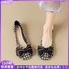 2024 Новые французские модные туфли в клетку в стиле ретро с металлической пряжкой и неглубоким носком, универсальные туфли на толстом каблуке для женщин, банкетное платье
