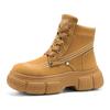 Осенне-зимняя мода Мужские желтые ботинки Модные уличные кожаные ботильоны Мужские рабочие ботинки Массивные мотоциклетные ботинки на шнуровке