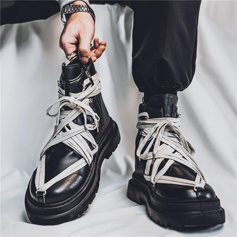 Уличные мужские черные мотоциклетные ботинки Модные короткие ботинки Crazy Strap Barrel Boots Мужские дизайнерские туфли на платформе Кожаные ботинки Hombre — купить товар онлайн с бесплатной доставкой по всему миру!