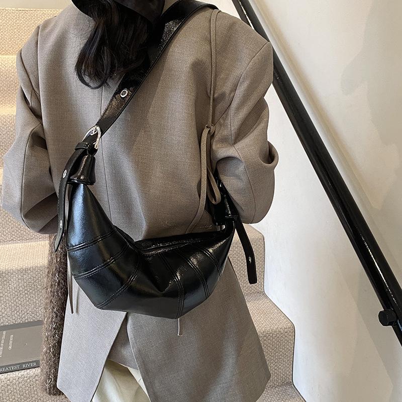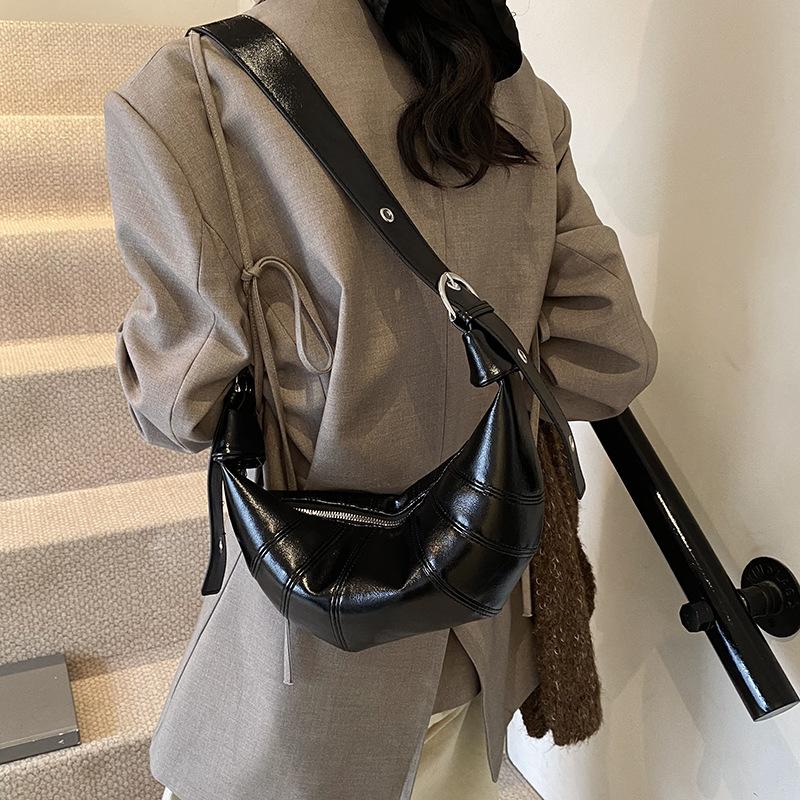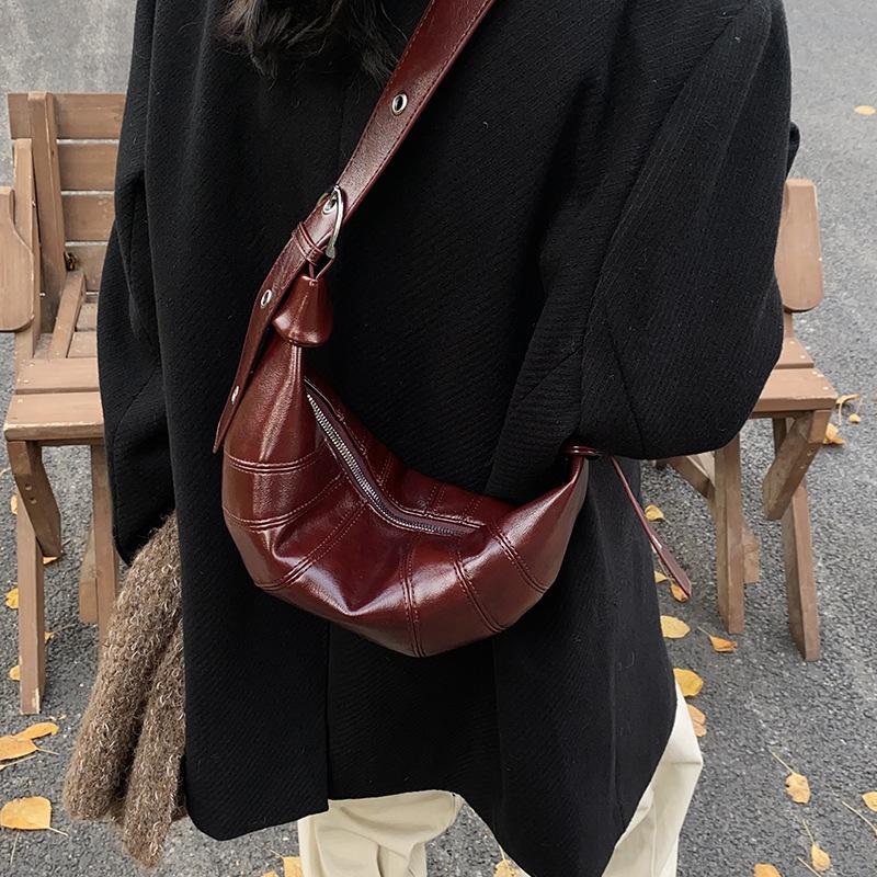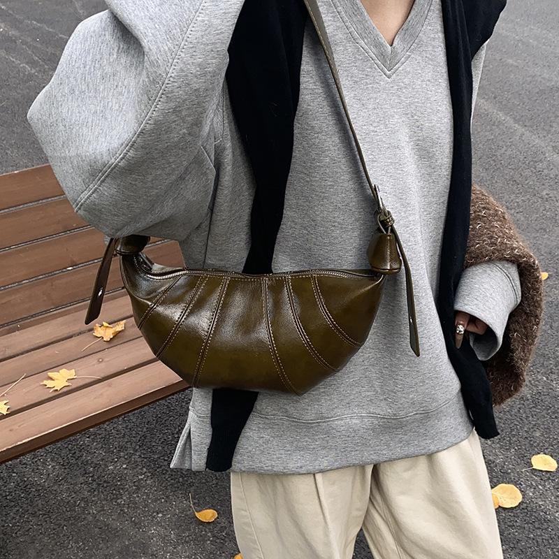 Autumn and winter new retro croissant fashion shoulder crossbody croissant soft leather bag high-end dumpling bag