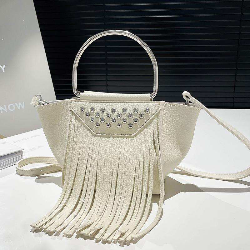 Трендовый нишевый дизайн с бахромой, простая портативная сумка-корзина для овощей, персонализированная заклепками, универсальная сумка-мессенджер в стиле Spice Girl