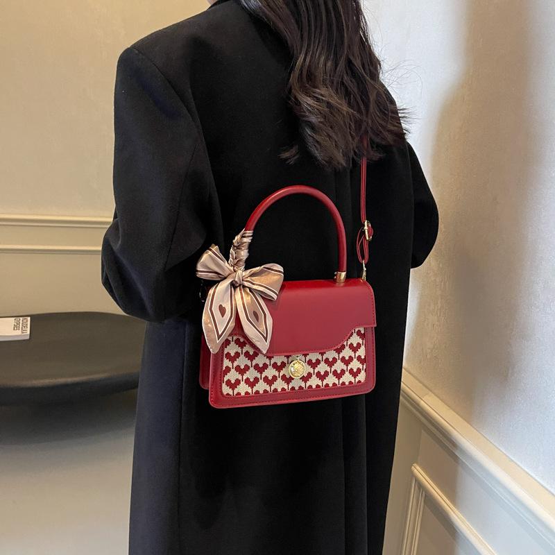 Red bag women's 2025 new fashion high sense foreign style portable messenger small square bag wedding bride bag wedding bag