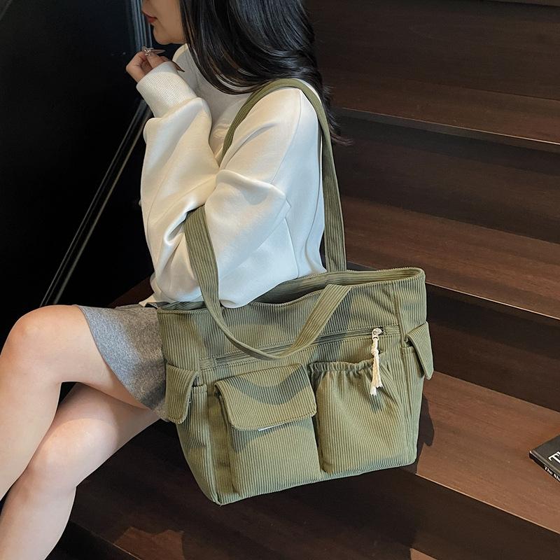 2025 new large-capacity tote bag corduroy portable messenger bag casual and lightweight student versatile tutoring bag