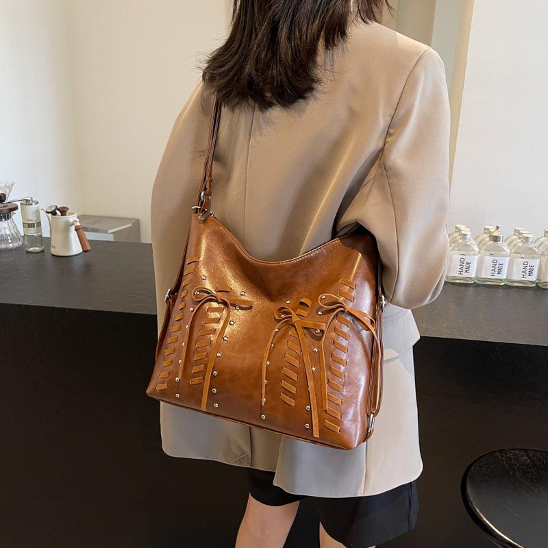 Retro underarm bag women's autumn and winter 2025 new trendy Korean bow tote bag large capacity shoulder commuter bag
