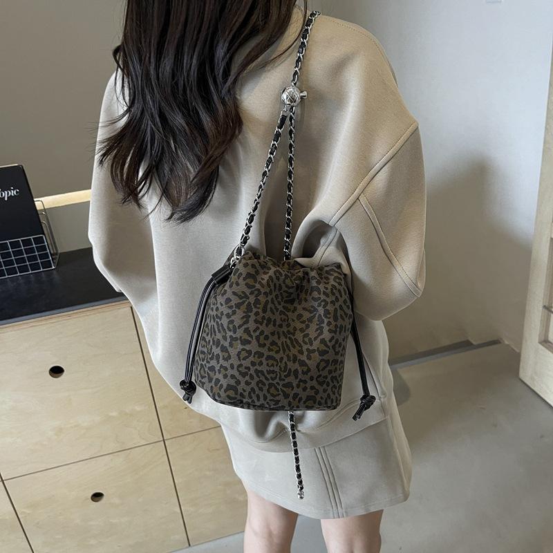 Женская сумка с леопардовым принтом 2025, портативная корейская версия, сумка-ведро, женская сумка для хранения, женская сумка через плечо