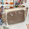 College Wind Baby Bag Pain Bag Versatile Simple Large Capacity Class Loading Book Mailman Bag Female Transparent Bar One Shoulder Crossbody