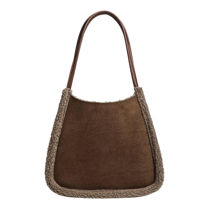 2025 нишевая сумка из овечьей шерсти зимняя новая ретро замшевая сумка-тоут модная универсальная наплечная сумка