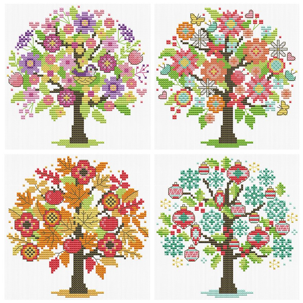 Частичная вышивка Эко-хлопковая нить 14CT Напечатанный Дерево Набор для вышивания крестом