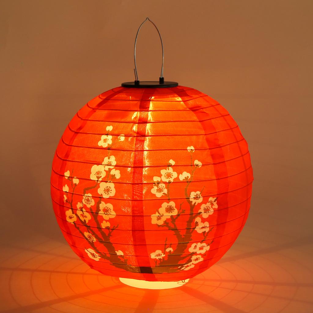 Светодиодный солнечный фонарь 30 см Слива Декоративный фонарь IP65 Водонепроницаемый Китайские традиционные подвесные фонари для сада, крыльца