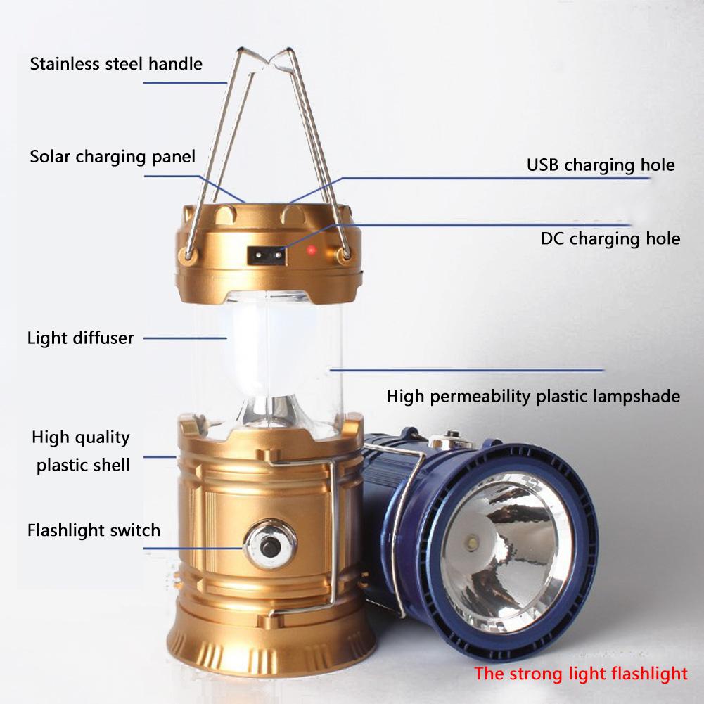 Solar Camping Lantern Collapsible LED Solar USB Rechargeable Lantern Flashlight Emergency Hanging Lights for Outdoor Camping