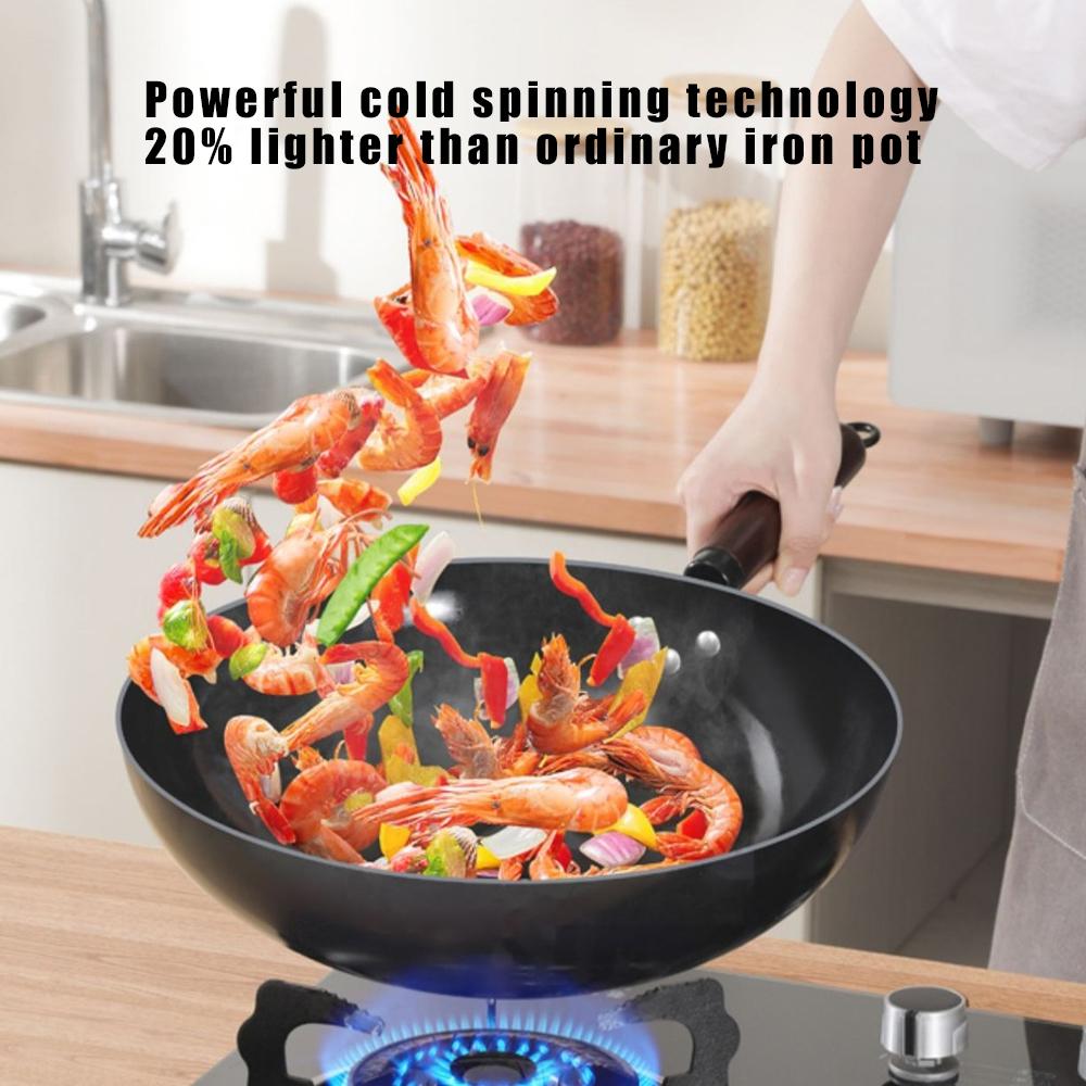 32 см Вок без покрытия Сковорода для жарки Домашняя Высококачественная Ручной работы Для приготовления пищи Кухонная посуда Китайская Традиционная Чугунная сковорода с антипригарным покрытием