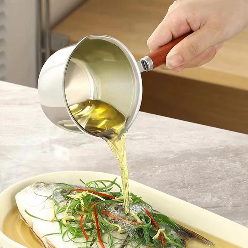 316Stainless Steel Oil Pot Mini Hot Milk Pan Frying Pan Wooden Handle Small Saucepan Boiling Butter Melt Pot Kitchen Accessories