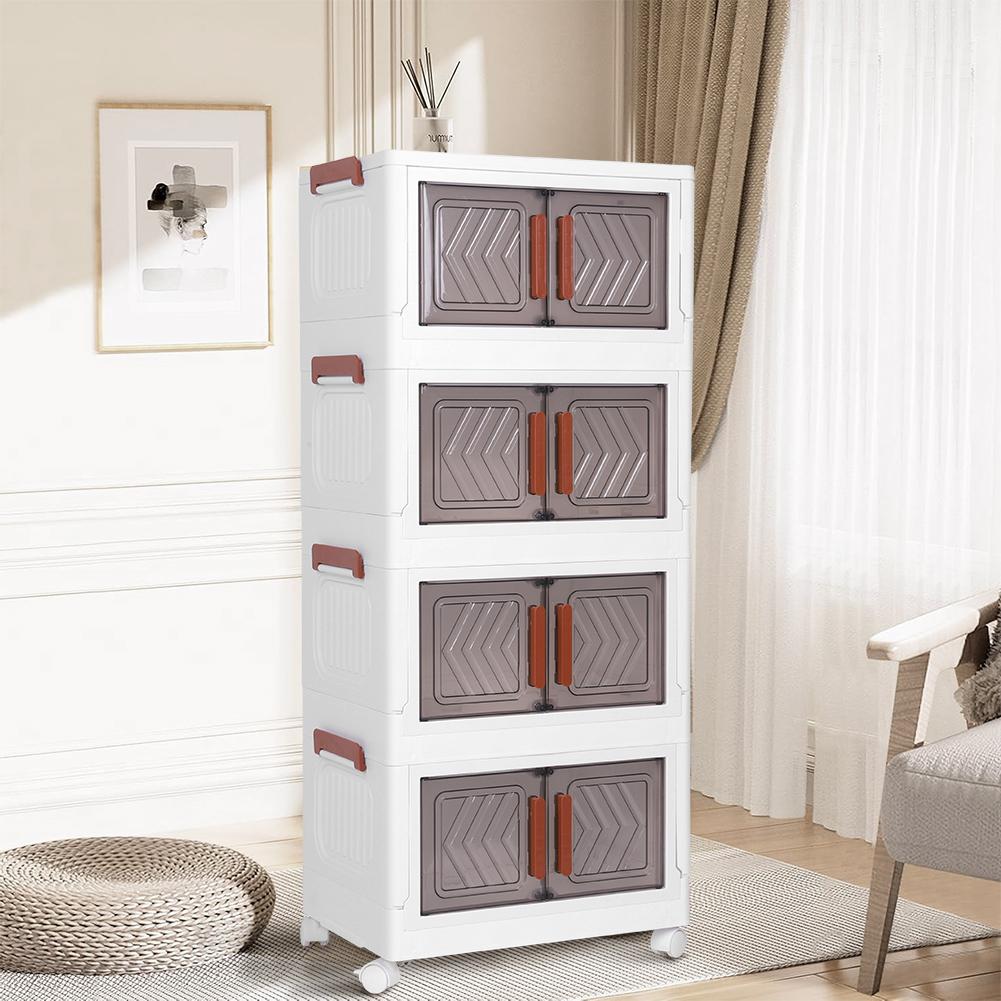 4-ярусный шкаф для хранения обуви Пластиковые контейнеры для хранения, Пластиковая коробка для обуви с дверцами и колесиками для демонстрации, Органайзер для обуви